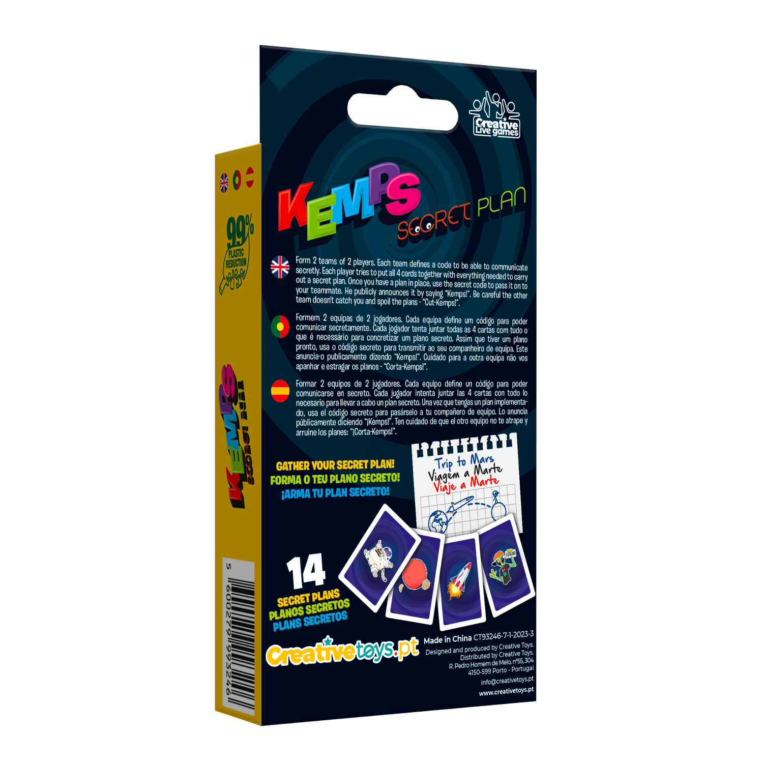 The popular game Kemps - or Keims as it's known in Portugal - with a twist. Now you have to collect 4 cards from your secret plan.