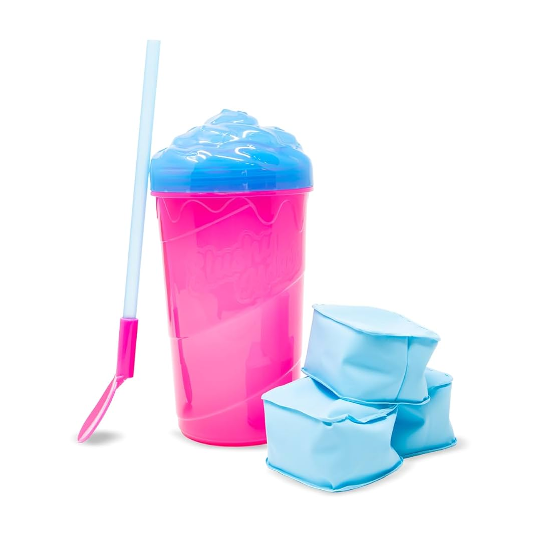 Transform any cold drink into a delicious slushy in just minutes! Granizastic is the most fun, simple, and quick way to create your favorite slushies. How it works: Place the frozen magic cubes in the Granizastic cup. Pour in your favorite cold drink. Close with the lid. Shake for 2 minutes… and enjoy a delicious and refreshing slushy! Includes: 1 slushy cup with lid, 1 straw, 1 spoon, 3 reusable freezer cubes. Note: Ingredients/drinks not included.
