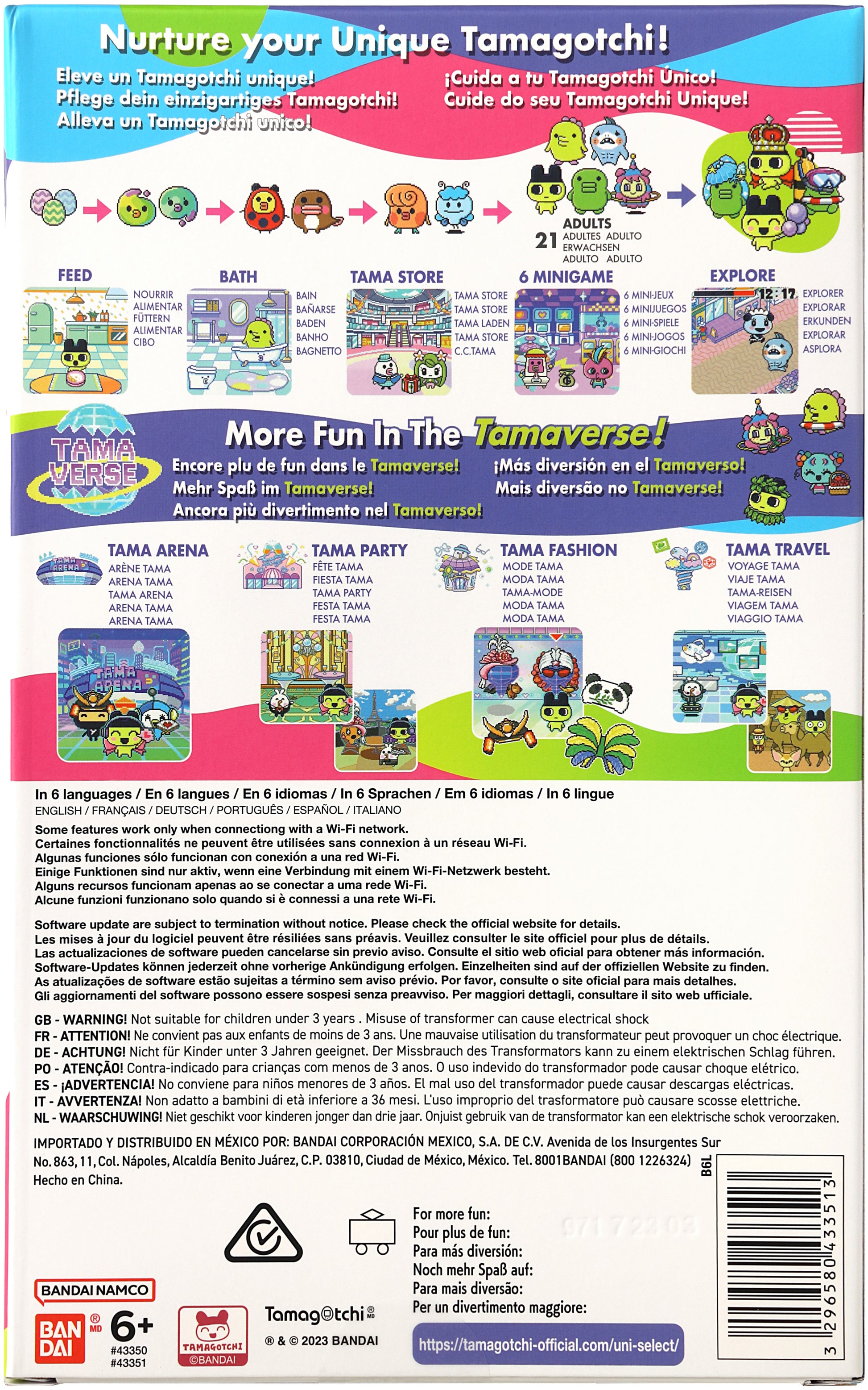 ¡Únete a la mayor aventura Tamagotchi de la historia! Cuida de tu Tamagotchi Uni de forma única y personalizada, y conéctate con mascotas virtuales de todo el mundo a través de Wi-Fi. Con el nuevo Tamagotchi Uni, tendrás acceso al paraíso virtual Tamaverse, donde podrás conocer nuevos amigos, participar en eventos, viajar y divertirte con juegos.
