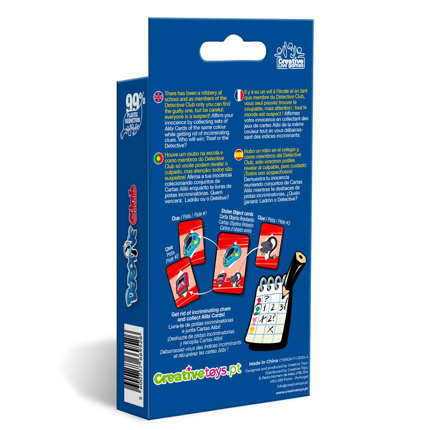 Houve um roubo na escola e como membros do Detective Club só vocês podem revelar o culpado, mas atenção: todos são suspeitos! Afirma a tua inocência colecionando conjuntos de Cartas Alibi enquanto te livras de pistas incriminatórias. Quem vencerá: Ladrão ou o Detetive?