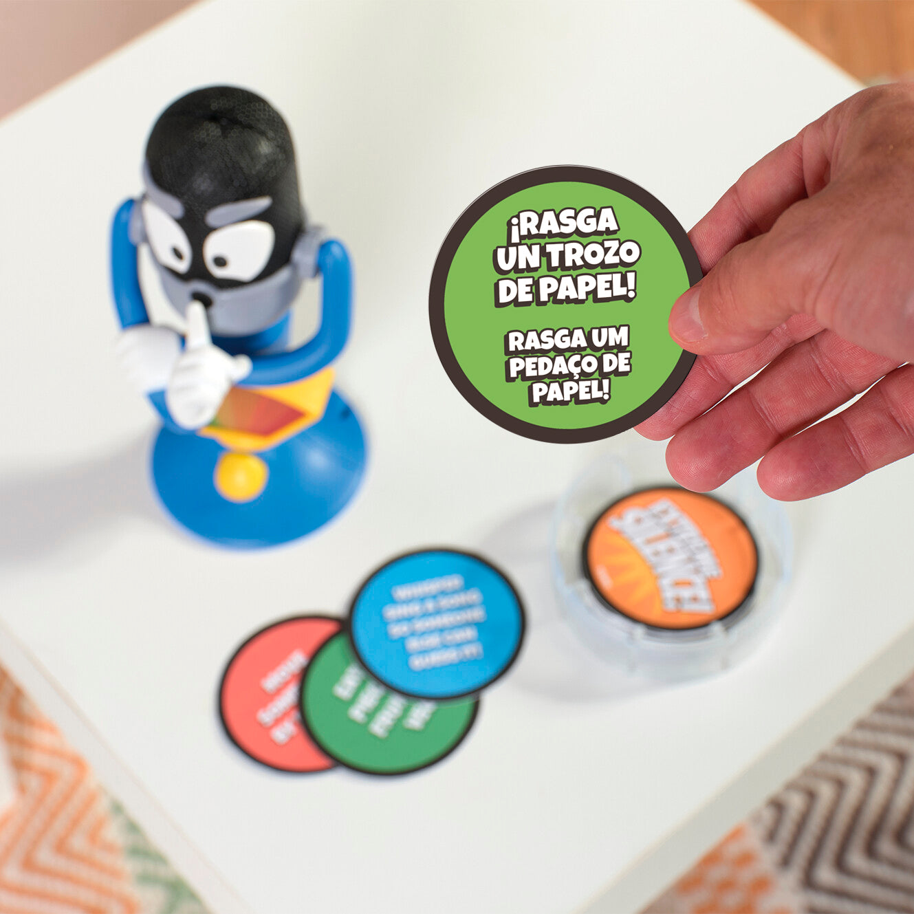 Segue as instruções dos cartões: os desafios parecem fáceis… mas será que consegues completá-los sem fazer barulho a mais? Se o alarme disparar, perdes o cartão!